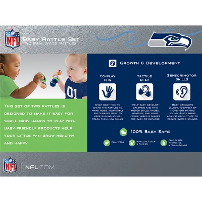 - Includes two Seattle Seahawks solid wood rattles