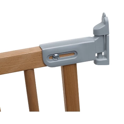 Designed to suit almost any home, the BabyDan Super Flexi Fit Extending Metal Safety Gate is the fixed gate which can be fitted on an angle: inside the openings, outside the opening (wall outside of the space), or diagonally across a space. Fits openings between 27.2” and 41.9” wide. Stands 29.1” tall. Can be easily removed from the wall brackets when not in. Two way opening system with optional “Stop Pins” allow the gate to only open in one direction when necessary (at the top of stairs) Manufactured in Denmark with 100% European beechwood.