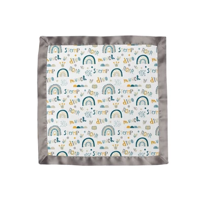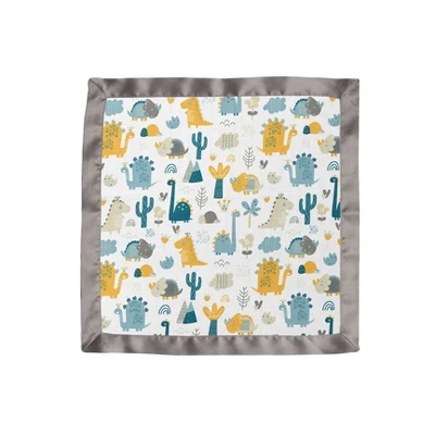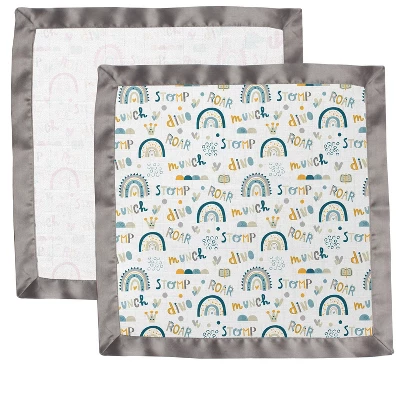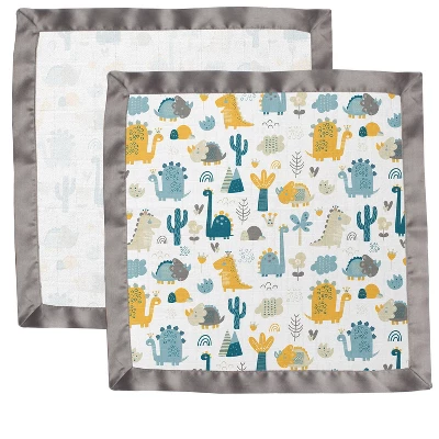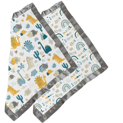 Bacati – Little Dino Rainbow Boys Muslin 2 Pack Security Blankets Aqua Teal Yellow Gray