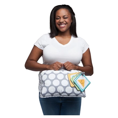 VIP seating while on the go! Your baby will be safe and protected from messes in the Boppy Luxe Shopping Cart and Restaurant High Chair Cover while you are out and about. Designed with a 2-point safety strap to keep your baby secure. Includes a plush comfy seat made of soft minky fabric and attached toys to keep your baby comfy and entertained. Patented SlideLine system attaches toys, pacifiers or other lifesavers for your baby to keep them within reach. You two won’t want to leave home without it. Also includes a bottle pocket and large storage pocket for your essentials.