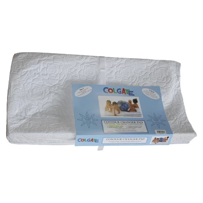 Colgate’s 3-sided contour changing pad provides a secure cocoon for baby while being changed. Screws are included to attach the changing pad to the back of a dresser or changing station. This product uses high-quality CertiPUR-US® certified foam, and it is GREENGUARD® Gold certified to produce no harmful air emissions or volatile organic compounds. All Colgate crib mattresses, pads, and accessories are non-toxic and pass all government safety standards for chemicals and flammability. This contour changing pad is manufactured by Colgate, The Crib Mattress Specialist®: a family-owned and operated company proudly making crib mattresses for over half a century in the USA.