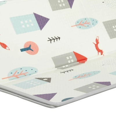 - The Dream On Me Play Time Reversible Baby Play Mat is easily foldable and comes with a convenient carry bag.