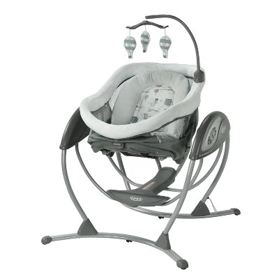 Gently lower the swing seat to create a safe and comfortable spot to rest without being disturbed. The swing seat reclines to a rocker with an easy, one-hand motion, giving your baby a safe and comfortable spot to rest without having to be moved from the swing. DuoGlider uses the same gentle motion as your nursery glider to soothe baby, and also features two-speed vibration, six swinging speeds, classical melodies and nature sounds and more to keep baby soothed and comfortable. You can plug it in or use batteries for two convenient options.