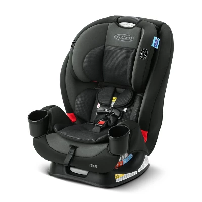 The Graco® TriRideâ„¢ 3-in-1 Car Seat helps to keep your little one safe from baby to big kid, through 3 modes of use: rear-facing harness (5-40 lb), forward-facing harness (22-65 lb), and highback booster (40-100 lb). The No-Rethread Simply Safe Adjustâ„¢ Harness System allows you to adjust the height of the headrest and harness in one motion, helping to save you time and ensure your child is properly secured. Choose the perfect headrest height from 10 positions and adjust the seat to 6 recline positions for a better installation. The easy-to-read level indicator helps eliminate installation guesswork and the car seat is LATCH-equipped for easy installation. The integrated harness storage compartment keeps the harness safely stored away, without removing, while in belt-positioning booster mode. Open-loop belt guides help properly position your vehicle’s seat belt across your child in highback booster mode. 2 easy-to-clean cup holders keep your child’s drinks and snacks close at hand, and the seat pad is comfortable and machine washable for your convenience. Removable plush head and body inserts help to keep your infant feeling cradled and comfortable. Steel-reinforced frame provides strength and durability for years of use. This car seat is Graco® ProtectPlus Engineeredâ„¢ to help protect in frontal, side, rear, and rollover crashes.