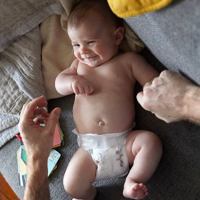 - GentleAbsorb Liner provides cushiony protection for baby’s skin, while Pocketed Back Waistband keeps the mess contained