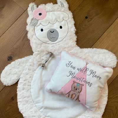 The Levtex Baby Imani Playmat is inspired by a happy and friendly llama . This Playmat features grey, pink, cream, taupe and white colors and is shaped like a llama in a soft, fluffy plush fabric. This item is ideal for tummy time, diaper changes or simply as an accent to your nursery decor. Enjoy for years to come!