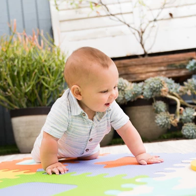Babies will go gaga for these squishy, soft, easy to clean foam tiles. From tummy time to their first steps – this extra thick foam mat creates a safe, soft place for little ones to play. The textured pieces provide early sensory interaction and the pop-out puzzle shapes encourage grow-with-me play. Includes six 17.5 x 17.5 puzzle squares for over 11 square feet of play space. Age grade is 0 to 36 months+.
