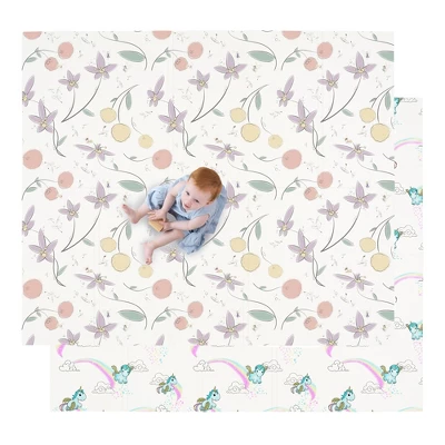- Space to Play – This large play mat clocks in at 70 inches by 59 inches, giving your little one plenty of space to crawl, play, or take a nap after they’re tuckered out. There’s enough room for Mom, Dad, or a friend to join your baby on the mat.