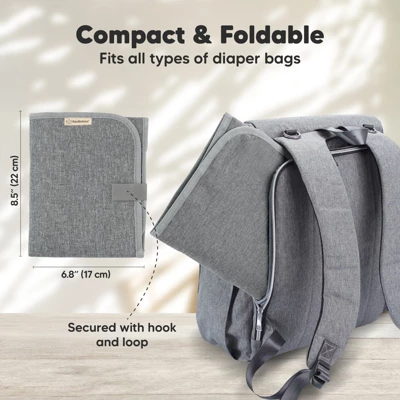 The KeaBabies Swift Diaper Changing Pad is the perfect portable changing pad for traveling. With a one-hand use design, this diaper changing mat easily opens up to a large baby changing pad area of 25.5” by 13.5” and folds into a compact size of 6.8” by 8.5”. Its waterproof and padded diaper changing surface protects your baby from any public hard and dirty surfaces. An excellent travel diaper changing pad for modern parents who are on-the-go.