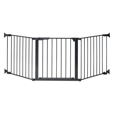 - BABY SAFETY GATE: 3-piece steel gate fits irregular-shaped openings up to 80 inches; Rotating joints allows you to angle gate to fit perfectly