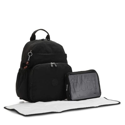 Toting your baby’s essentials around just got a lot easier. We amped up a lightweight nylon backpack diaper bag with comfy shoulder straps and infant-minded extras like a removable changing pad, side baby bottle pockets, and stroller clips. The roomy interior offers plenty of space for diapers, wipes, toys, and snacks, while front pockets offer a space for mom or dad to place their keys, cell phone, and wallet.