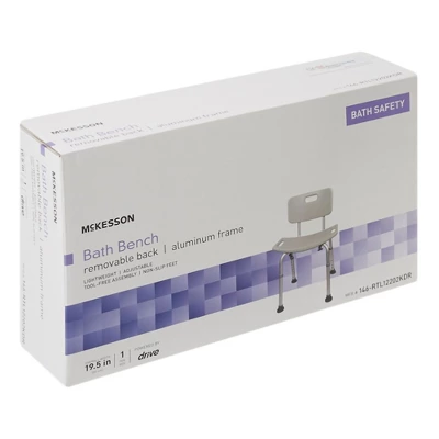 The McKesson Bath Bench with is a reliable and practical solution to assist with bathing. Made with corrosion-resistant, lightweight aluminum construction, this bath bench provides lasting support for up to 300 lbs. The ergonomic design features a curved plastic seat with handles and angled legs on non-skid tips, offering enhanced comfort and stability. The removable back accommodates the user’s needs and preferences, and the tool-free assembly makes it easy to set up. The added support collar helps combat leg movement and reduces rattle, and the bath bench is arm-free, providing ample space for movement. The height adjusts in 1-inch increments using a pinch-free, push-button design with an audible click to ensure secure positioning. With a height range of 15 1/2 inches to 19 1/2 inches, a seat width of 19 1/4 inches, and a seat depth of 11 1/2 inches, this bath bench is versatile and accommodating. Stay safe and comfortable during bath time with the McKesson Bath Bench.