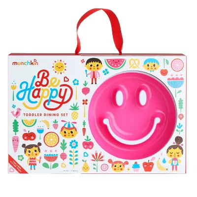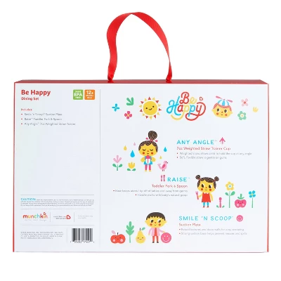 Start every meal with a smile! Even the pickiest eaters will agree: our Be Happy toddler dining set is an adorably appetizing way to give little ones independence at the dinner table. Self-feeding is a major milestone, and this fun set comes with three bestselling products to keep kid messes contained. Our ergonomically designed Raise utensils have special bases that keeps tips off tables and floors (major win!). Our Smile ‘n Scoop suction plate stays put no matter what, and our Weighted Trainer Straw Cup allows kids to drink from any angle without leaks. It all comes in an adorable package, sure to bring a smile to any growing toddler’s face. Cheers to making meals less chaotic – and more fun!