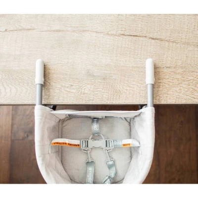 - SAFE AND SECURE: Sturdy all metal frame, includes a 5-point adjustable harness and double locking system to ensure a safe and secure attachment to tables. Safe for children up to 37 lbs. Passes all safety standards set by ASTM and JPMA.
