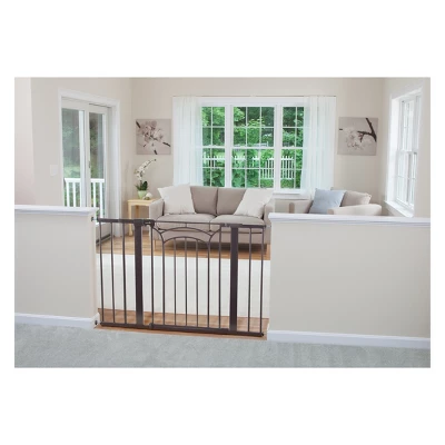 Now that baby is on the move, the Easy Install Décor Tall & Wide Gate makes it simple to create child friendly areas within your home. For use between rooms, a walk through gate makes it easy to get around the house, with no need to reinstall it each time you pass by. All pressure mounted gates need to be occasionally tightened before they become too loose. This safety gate makes knowing when to do this simple. When the SecureTech® indicator turns red, it’s time to re-adjust the pressure. An extra-wide gate lets you easily block off the larger through-ways in your home. This extra-tall gate is also designed to provide additional height protection and is great for homes with both babies and pets. The gate is 36 inches high and can be adjusted from 29 to 47 inches.